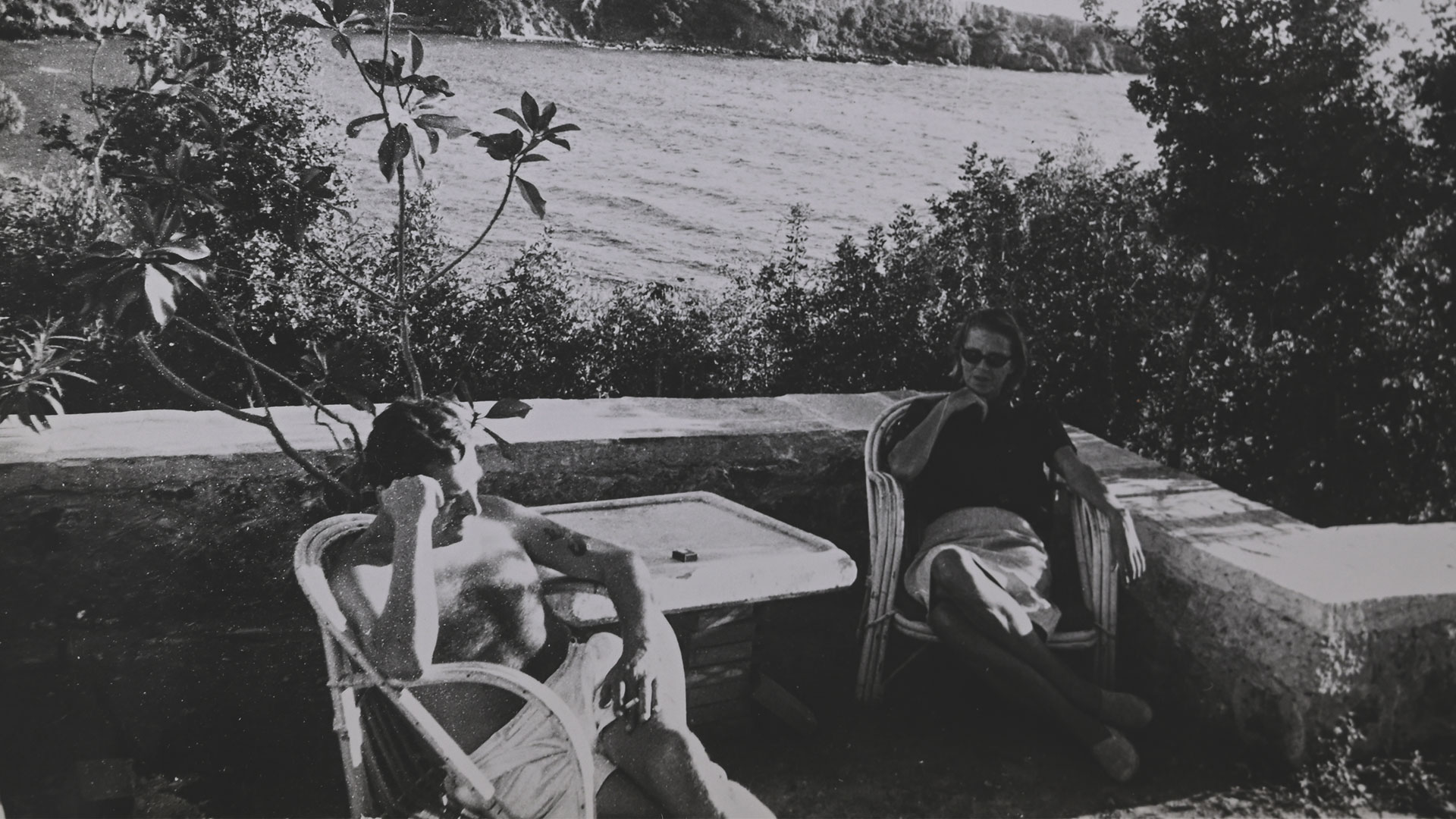 Ο Ν. Χ.-Γκίκας με την Tζόαν, Ύδρα 1955. Μουσείο Μπενάκη / Πινακοθήκη Γκίκα, Φωτογραφικό Αρχείο